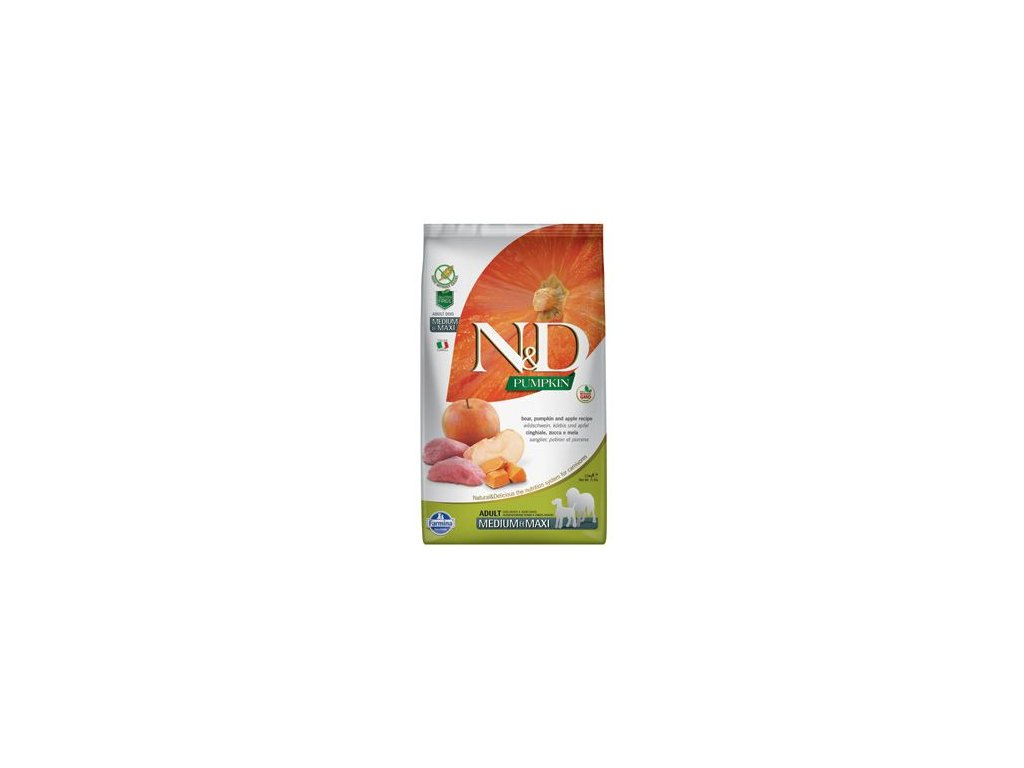 N&D Grain Free Pumpkin Boar & Apple Adult M/L DogDivočák, dýně a jablko.