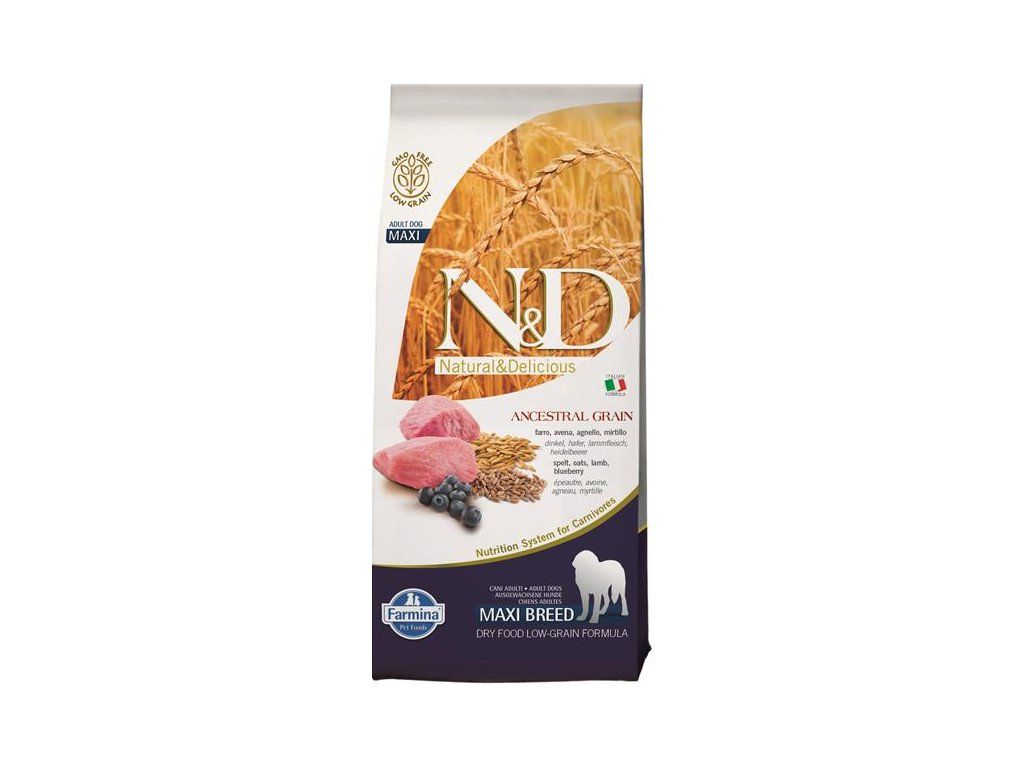 N&D ANCESTRAL GRAIN Dog LG Lamb, Spelt, Oats & Blueberry Adult Medium & Maxi 12 kg
