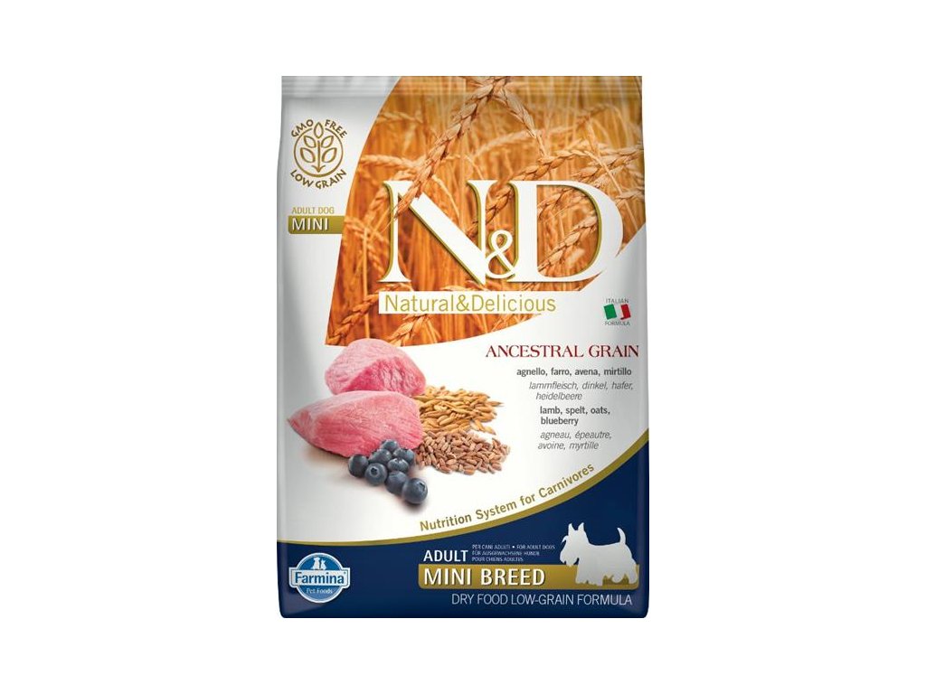 N&D ANCESTRAL GRAIN Dog LG Lamb, Spelt, Oats & Blueberry Adult Mini 7 kg