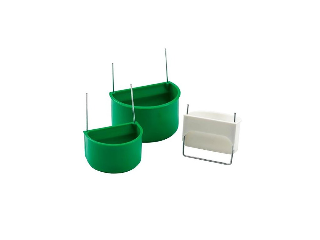 Krmítko s uchycením do klece je použitelné na vodu i sypanou stravu.