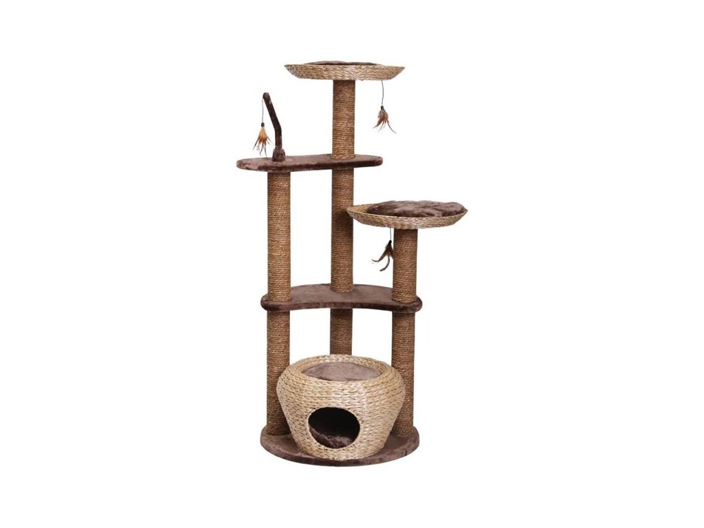Dokonalý rozhled po okolí bude mít kočka z horních odpočívadel. Zatím co skvělou skrýš ke svému odpočinku najde v domečku z vodního hyacintu. Pro dokonalé pohodlí jsou součástí škrabadla měkké polštářky z příjemného a zároveň hřejivého plyše.